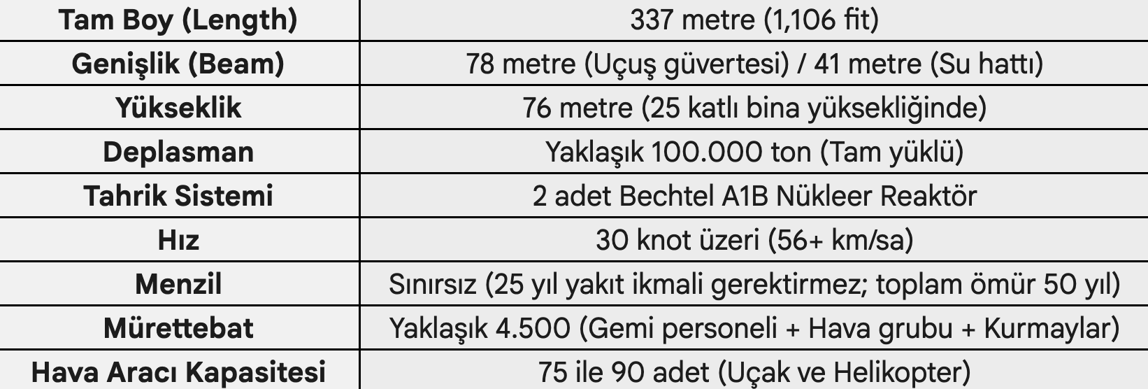 USS Gerald R. Ford (CVN-78) Teknik Özellikleri