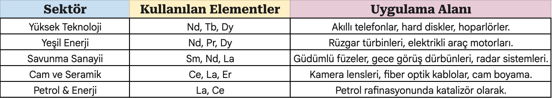 Nadir toprak elementlerinin kullanım alanı o kadar geniş ki, modern hayatta onlara dokunmadığınız bir saniye bile yok diyebiliriz: